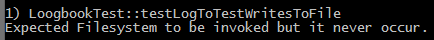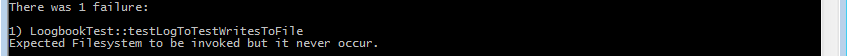 }Und wie Euch bereits aufgefallen ist, wird beim Aufruf der Abhängigkeit Filesystem in der Klasse Logbook dieses mal keine Dependency Injection verwendet. Das heißt, ein neues Objekt der Filesystem-Klasse wird erst im Aufruf der Methode logToFile vorgenommen. Dadurch wäre es unter normalen Umstände nicht möglich die Methode logToFile zu testen ohne dabei wirklich auf das Dateisystem zuzugreifen.