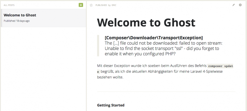 Für viele Blogger war der 14. Oktober 2013 ein lang ersehnter Tag. Seit besagtem Tag steht die Blogging Plattform Ghost der Öffentlichkeit zur Nutzung bereit. Zwar wurde Ghost nur in der Version 0.3.2, also einer Beta-Version, released, jedoch wurde wahrscheinlich kein anderes Kickstarter-Projekt sehnlicher erwartet.